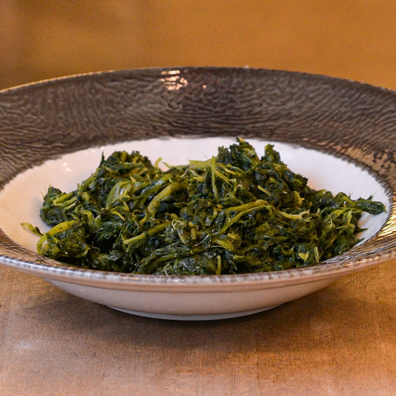 Spinach sautéed in a pan with Biancolilla extra virgin olive oil, garlic, salt and pepper.