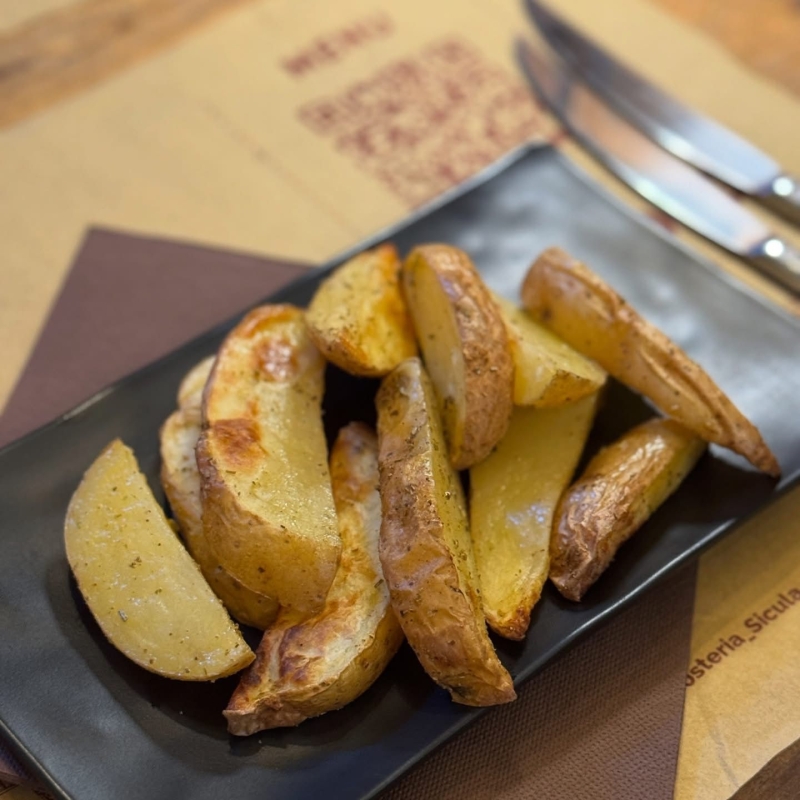 Ingredienti: Patate a Pasta Gialla con Buccia al Forno. Taglio Rustico.