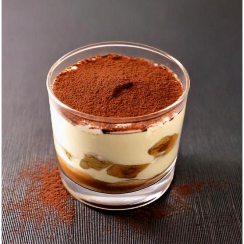 Ingredienti: Tiramisù Artigianale della Tradizione con Mascarpone, Savoiardi Secchi e Caffé della Moka. Servito al Bicchiere con Cacao Amaro e Scaglie di Cioccolato Fondente