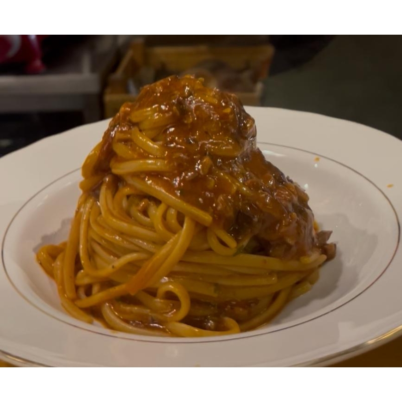 Ingredienti: Spaghetti, concentrato di pomodoro, aglio,
