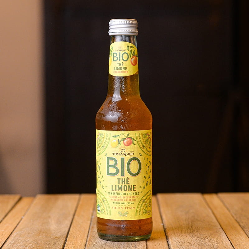 Ingredienti: Acqua, zucchero di canna*, succo di "Limone di Siracusa IGP" da concentrato*(0,8%), succo di mandarino di Ciaculli da Concentrato*(0,8%), infuso di thè nero*(0,6%), zucchero bruciato*, acidificante: acido citrico, aromi naturali, antiossidante: acido ascorbico.