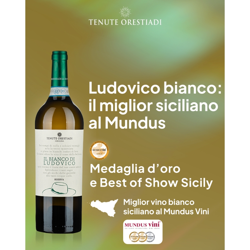 Ingredienti: Tenute Orestiadi / Il Bianco di Ludovico / Riserva DOC / Catarratto 90%-Chardonnay 10% / 6 Mesi sui Lieviti + 3 Mesi Tonneaux di Rovere Francese + 6 mesi Acciaio Sur Lies - MundusVini 2025 Gold Medal - Bibenda 5 Grappoli - GIBELLINA/TRAPANI