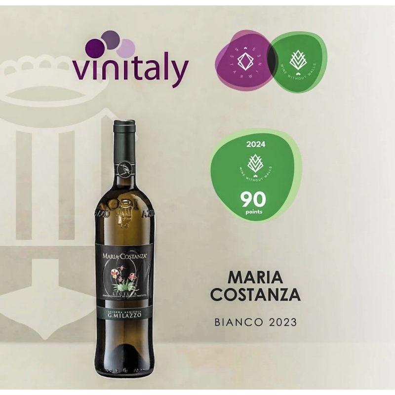 Ingredienti: Az. Agr. G. Milazzo / Maria Costanza / Blend DOP / Inzolia-Chardonnay / Biologico / Cru Selezione di Alta Gamma / Barriques e Acciaio / Contrada Ninotta-Contrada Fondiró / First Edition: 1991 - Concours Mondial de Bruxelles 2024 Gold Medal - 5 Wine Stars Vinitaly 2023 90 pt. - Le Cittadelles du Vin Bordeaux 2023 Gold Medal - CAMPOBELLO DI LICATA (AG)