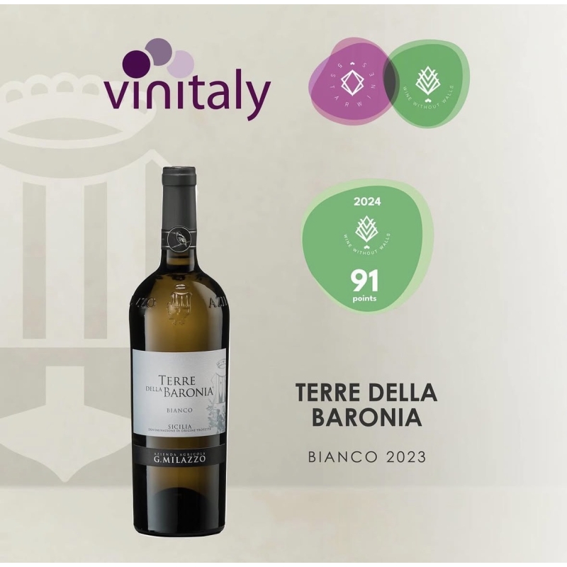 Ingredienti: Az. Agr. G. Milazzo / Terre della Baronia / Sicilia DOP / Catarratto Lucido 100% / Biologico / Contrada Fondiró - 5 WineStars Vinitaly 2024 91 pt. - Challenge du Vin Bordeaux 2023 Golden Medal - Mondial du Vin Bruxelles 2023 Silver Medal - Mondial du Vin Bruxelles 2022 Golden Medal - CAMPOBELLO DI LICATA (AG)
