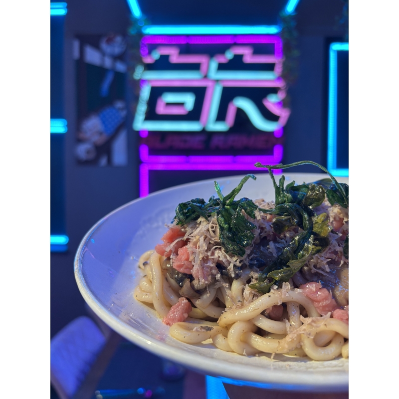 Ingredienti: Shiro miso ramen con brodo di pollo, burro d’arachidi e latte di cocco, noodles homemade, uovo marinato, yakitori di pollo laccato, germogli di soia, bambù, cipollotto, sesamo e verdura di stagione.